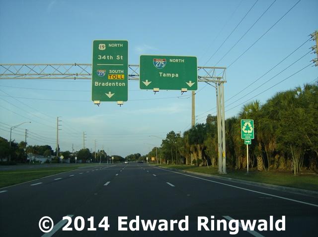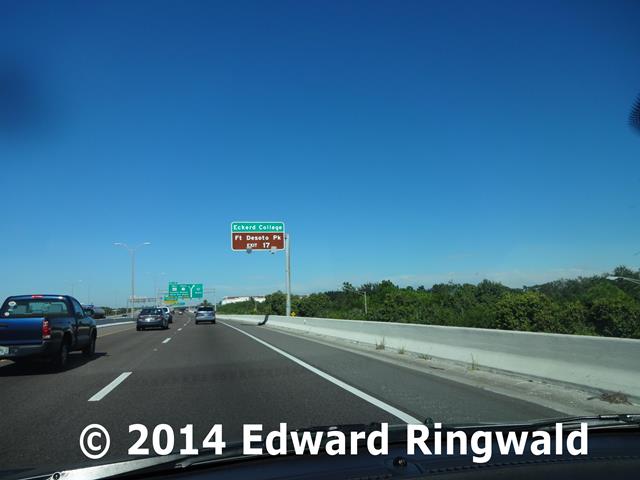 Constructed in 1983 the ninth segment of Interstate 275 takes the highway to 54 Av S and provides access to St. Pete Beach and Fort DeSoto Park via the Pinellas Bayway. The southbound exit from and the northbound entrance to Interstate 275 at Exit 17 is accomplished via ramp connections at 54 Av S as well as a dedicated flyover ramp connecting the Pinellas Bayway directly. On the other hand, southbound entrance to and northbound exit from Interstate 275 at Exit 17 is provided by a connection to 34 St S (also known as US 19) which provides access to 54 Av S, the Pinellas Bayway as well as 34 St S. The 34 St S connection was constructed as part of the next segment with Pinellas Point Drive South. Eckerd College, a private 4-year college, is reached using the Pinellas Bayway exit. Lakewood High School; home to a well respected technology program called theCenter for Applied Technologies, is reached from 54 Av S.