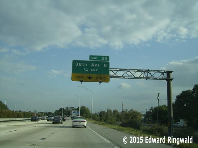The fourth segment of Interstate 275 brought the highway from its temporary end at a point just south of 50 Av N to a point just south of 22 Av N, bringing interstate access to both 38 Av N and 22 Av N. When this section of Interstate 275 opened, a new temporary end was established at 22 Av N until Interstate 275 was extended further south to 5 Av N a couple of years later. An earlier version of Interstate275Florida.com combined both 22 Av N and the exit to the north when the highway was built, 38 Av N; for your convenience I have separated both the 22 Av N (Exit 24) and 38 Av N (Exit 25) topics.
