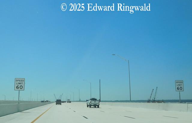 Another feature of the new Howard Frankland span is that it will also be pedestrian and bicycle friendly, as there is a dedicated bicycle and pedestrian path on the north side of the new span. With the 1960 and 1991 spans pedestrians and bicycles are not allowed on the Howard Frankland Bridge being an integral part of Interstate 275 and, being an interstate highway, pedestrians and bicycles are not allowed. The new pedestrian and bicycle lane of the new Howard Frankland span would be adequately barriered off, similar to the pedestrian and bicycle lane that is on the northbound span of the Dick Misener Bridge (this is the first bridge you cross heading south on Interstate 275 going towards the toll plaza and the Sunshine Skyway Bridge) with a Jersey barrier system separating bicycle and pedestrian traffic from high speed Interstate 275 traffic. Besides, having a pedestrian and bicycle path on the Howard Frankland Bridge would be very ideal especially for the people who live in close proximity to the Howard Frankland Bridge including the far northeast Gandy area of St. Petersburg and the Westshore area of Tampa, as it would save a tremendous distance by having to use the Gandy Bridge or the Courtney Campbell Causeway as it is presently.