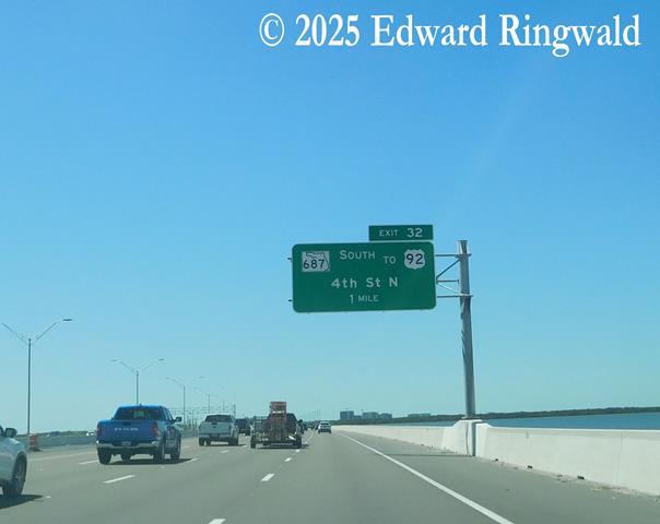 The Howard Frankland Bridge was constructed utilizing a low level trestle with a high clearance at the midway point of the bridge (which is commonly known as the hump) plus dredged causeways on both the St. Petersburg and Tampa sides. Interchanges at Kennedy Boulevard (Exit 39A) on the Tampa side and at 4th Street North (Exit 32) and Ulmerton Road/Martin Luther King Street North (Exit 31) on the St. Petersburg side were constructed, as well as bridges on the interstate mainline and 4th Street North crossing Big Island Gap.