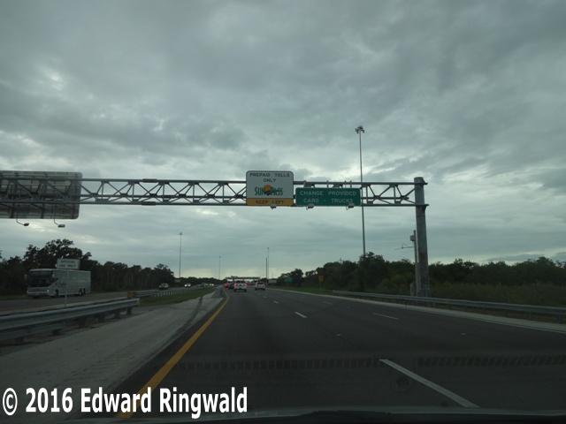 Toll to drive across the Sunshine Skyway Bridge (as of 2026) is $1.75 for passenger cars, and can be paid with cash or SunPass (an electronic toll collection device that makes driving on toll roads and bridges in Florida more convenient) for the lower toll rate of $1.16. However, in February 2026 the Sunshine Skyway is transitioning from traditional toll collection to all-electronic tolling; the toll plazas are expected to be removed and all-electronic high speed toll gantries similar to toll gantries on the Selmon Crosstown Expressway as well as the Veterans Expressway/Suncoast Parkway in Tampa will take their place. Having all-electronic tolling allows motorists to maintain highway speed while tolls are collected.