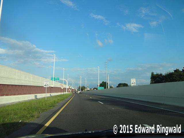 Continuing northbound on Interstate 275 we pass over the Exit 42 complex consisting of Armenia Avenue and Howard Avenue which was constructed in 1963. Armenia Avenue is a one way street southbound while Howard Avenue is a one way street northbound. When Interstate 275 was originally built from Dale Mabry Highway northward it becomes a six lane highway and once past the Exit 42 complex Interstate 275 widens out further into an eight lane highway. When the highway was originally built the overpasses were sets of two bridges, one crossing Armenia and the other crossing Howard. During the mid-1970’s the median on Interstate 275 was paved and a wall barrier (called a Jersey Barrier) was constructed.