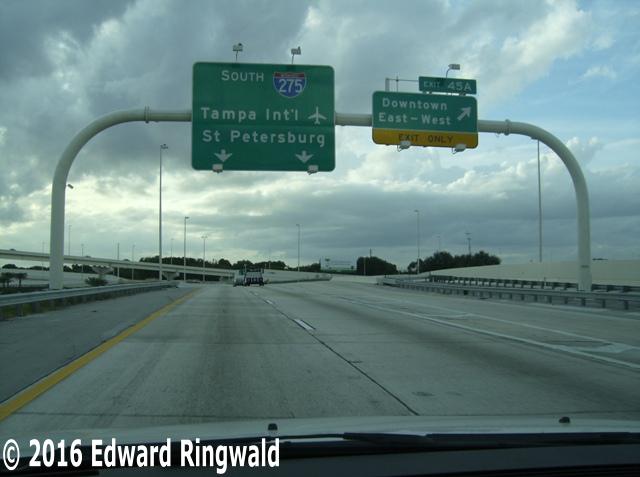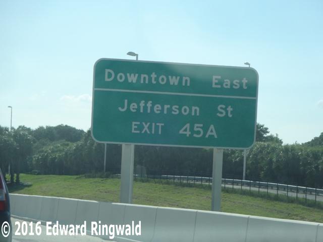 There are two entrance ramps onto northbound Interstate 275 at Exit 45A from Jefferson Street: One ramp enters northbound Interstate 275 in the left lane enabling motorists to remain on Interstate 275, while the other ramp enters Interstate 275 in the right lane providing access to eastbound Interstate 4. The two entrance ramps help cut down on the weaving movements once on Interstate 275 northbound from Jefferson Street, as it is a short distance between Jefferson Street and Interstate 4.