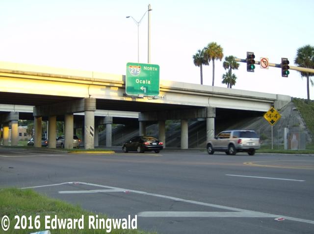 As you will see in the perspective photos, you will notice a change in the architectural design of the overpass support piers as the segment of Interstate 275 from a point between Sligh Avenue and the Broad Street overcrossing southward to a point just south of Floribraska Avenue (Exit 46A) was built in 1966. North of this point between Sligh Avenue and Broad Street is where Interstate 275 was built in 1967 to a point immediately south of Bearss Avenue (Exit 53).