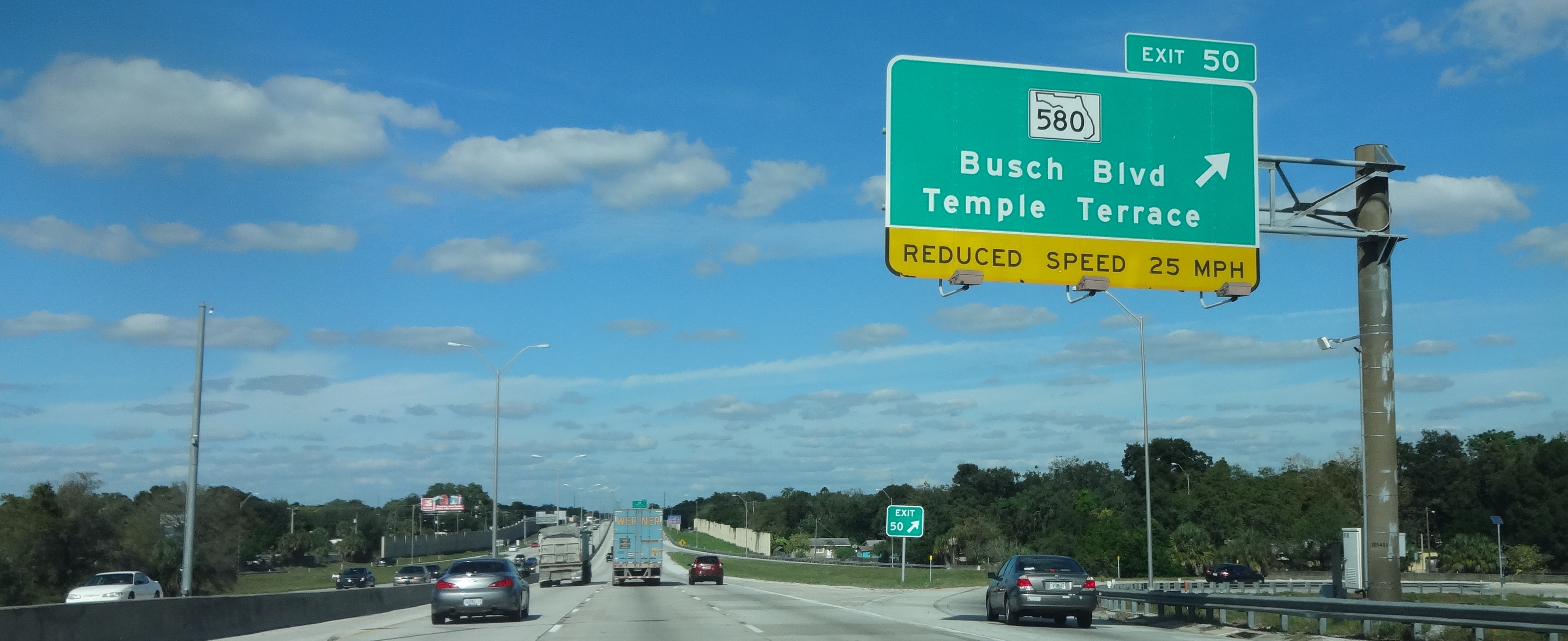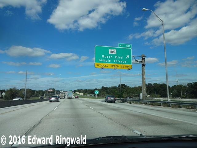 Busch Boulevard is an east-west highway carrying FL 580 from Dale Mabry Highway to Temple Terrace. One of the Tampa Bay area’s major attractions, Busch Gardens and Adventure Island, can be reached at this exit. It is believed that this exit would be situated at Yukon Street rather than Busch Blvd., which is why the overcrossing on Yukon Street is wide enough to accommodate a divided highway with four lanes of traffic.