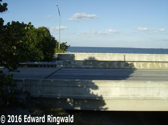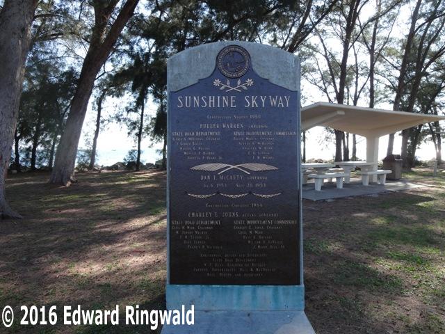 On 9 May 2015 - 35 years to the day the southbound span of the Sunshine Skyway was hit by the Summit Venture causing 1,260 feet of the Sunshine Skyway's southbound span to fall into Tampa Bay taking with it 35 lives - a long awaited and well deserved memorial was erected and dedicated to the 35 people that lost their lives that fateful morning. It is located in the Sunshine Skyway North Rest Area southwest of the rest area building.
