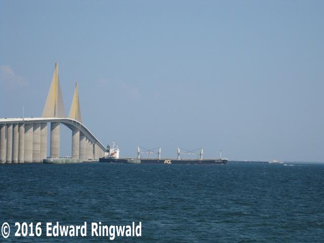 The new Sunshine Skyway basically followed the footprint of the old Sunshine Skyway, the only exception being that of the high level cable stayed span which was built to the east of the twin cantilever spans. This was done basically as a safety factor for ships: It would give ships coming into Port Tampa Bay time to make the required northeast turn at Buoys 1A and 2A. With the old twin cantilever spans, the turn was way too close, and the Summit Venture missed that critical turn on that stormy morning of 9 May 1980 which, among other things, contributed to a series of events that would result in the old Sunshine Skyway's southbound span being hit.